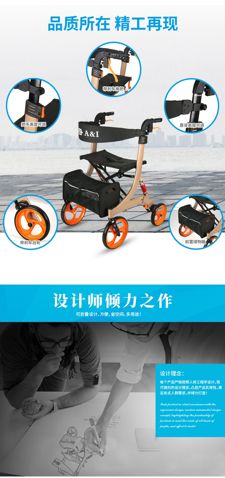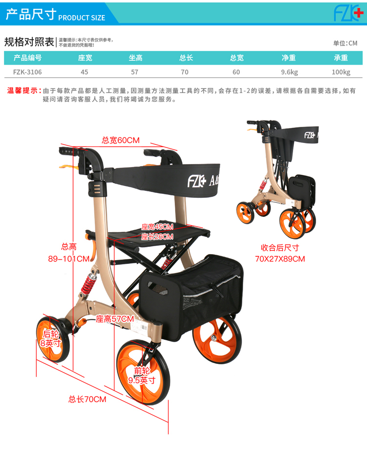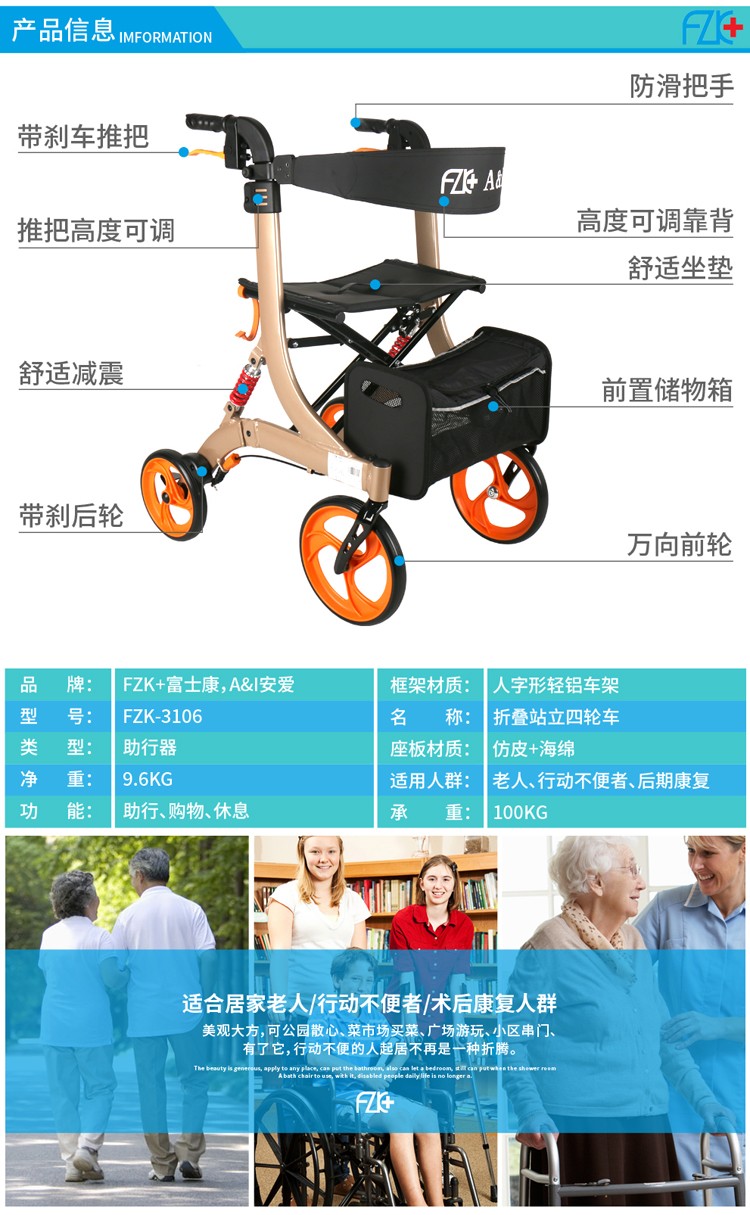FZK-3106 折叠站立四轮车(减震款)